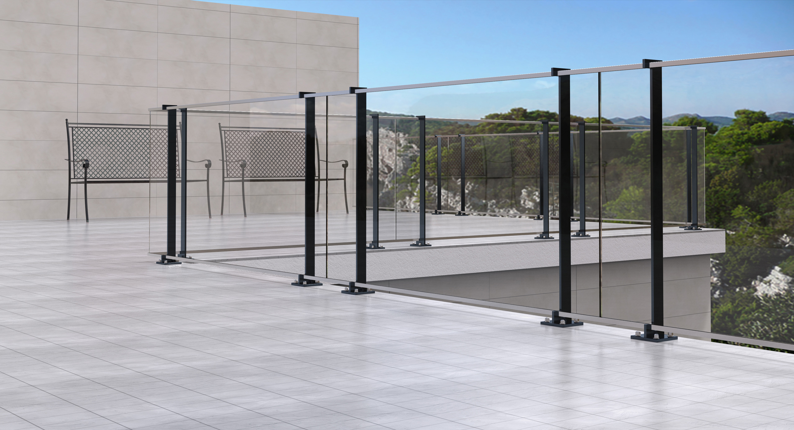 Das Profilsystem cp-1432/1433 mit abP ist die ideale Ergänzung zu den Ganzglasgeländerprofilen der cp-Serie. So lassen sich in der Kombination mit einer Glasstärke von 21,52 mm raumhohe und zudem absturzsichernde Verglasungen bis zu einer Scheibenhöhe von 4000 mm realisieren. Zudem zeichnet sich das System durch einfache Montage und verdeckte Verschraubungen aus.