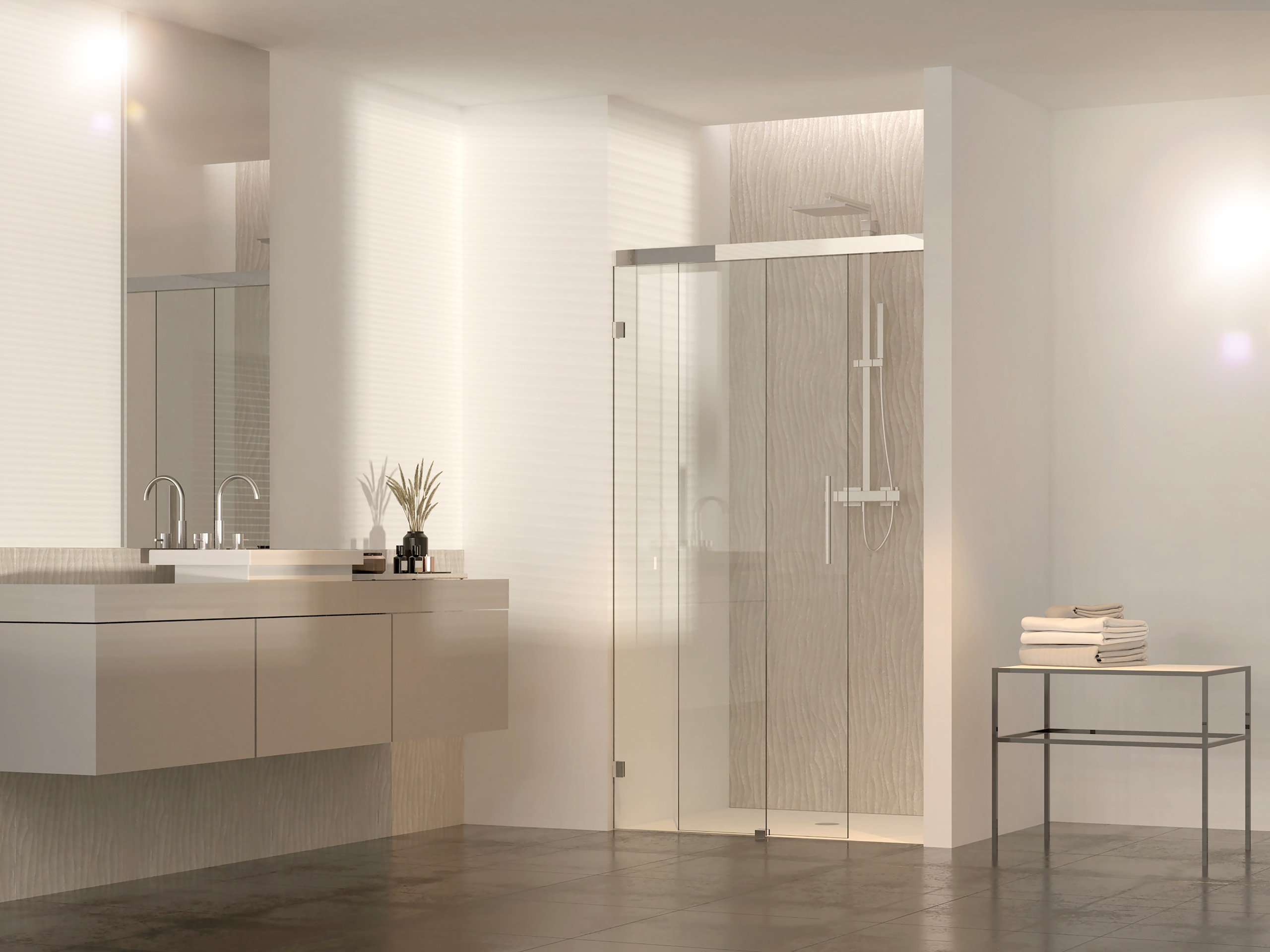 EVERYSPACE Nichendusche Typ 104 R, 1 Schiebeflügel, 1 Seitenteil, mit Softstop