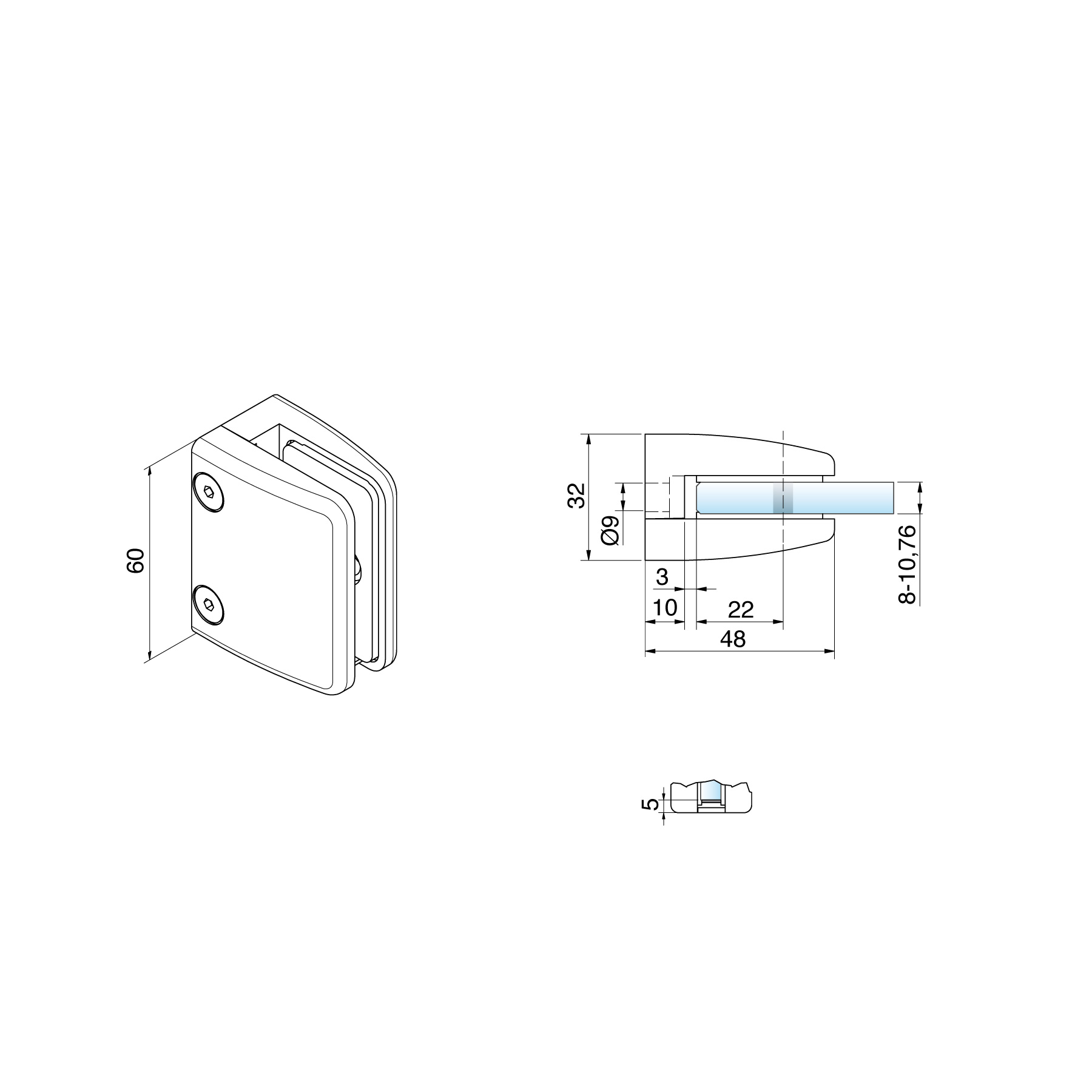 Klemmbefestigung für 8-8,76mm Glas, aus Zink