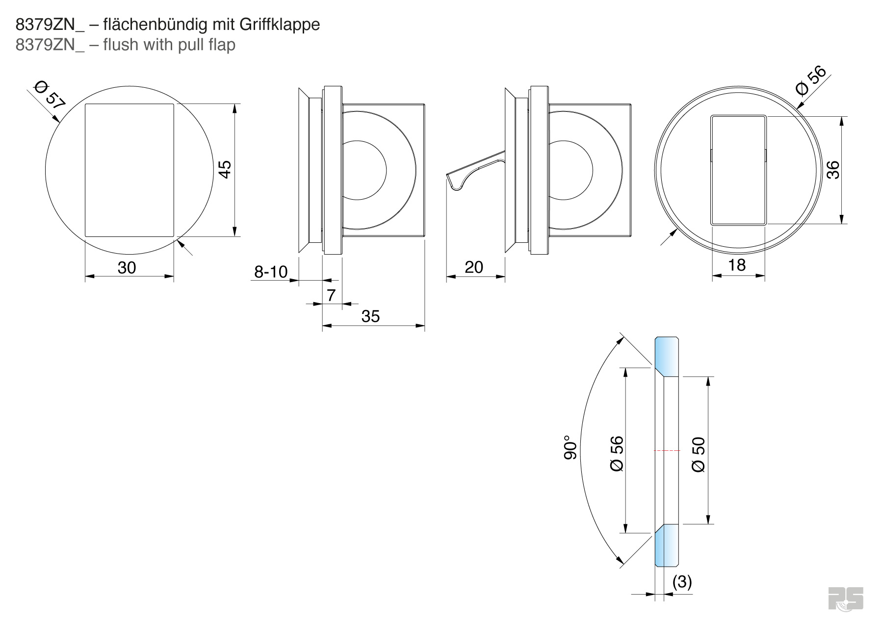 Glastürgriff, innen flächenbündig mit Griffklappe, verschraubt, für 8-10 mm