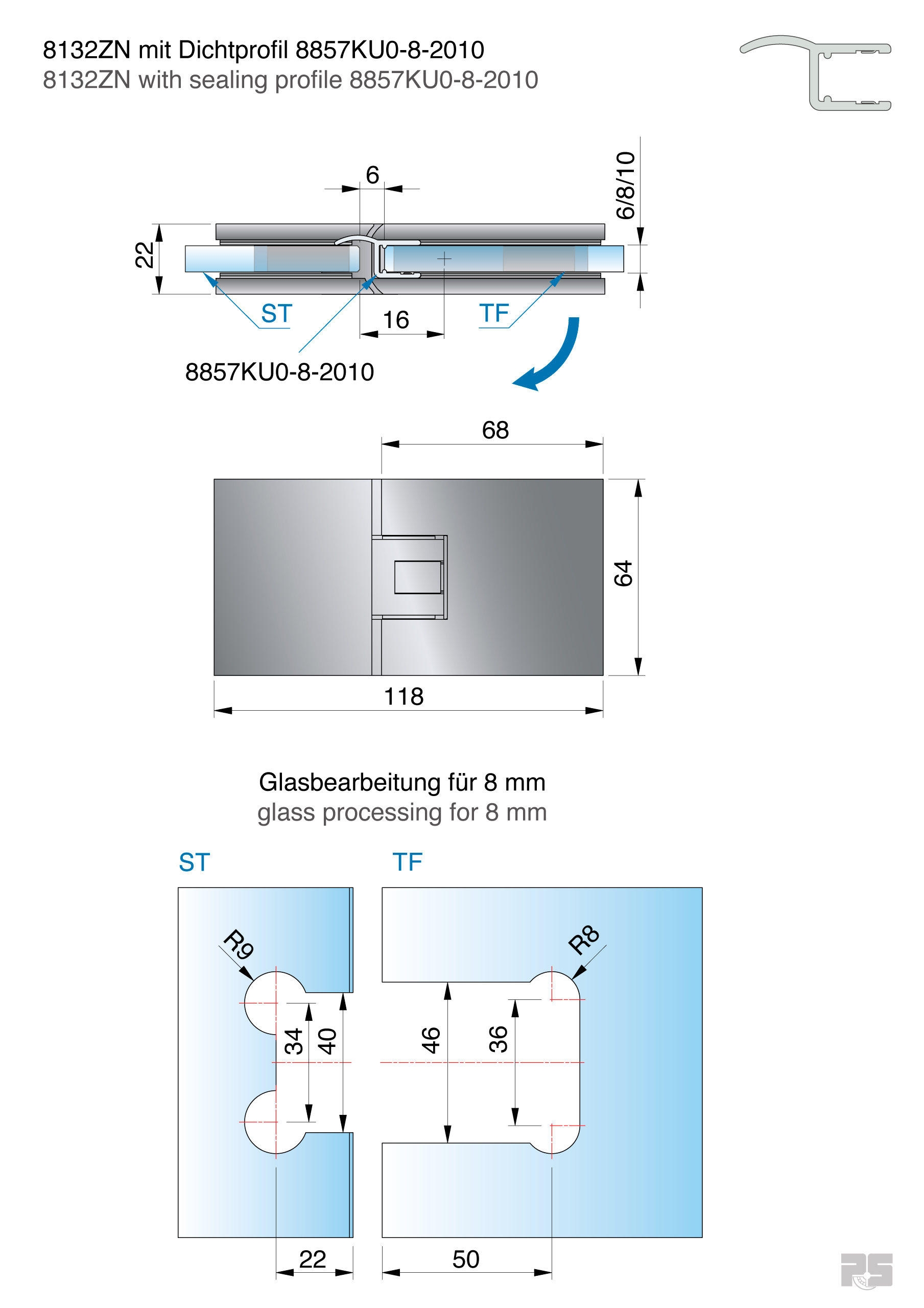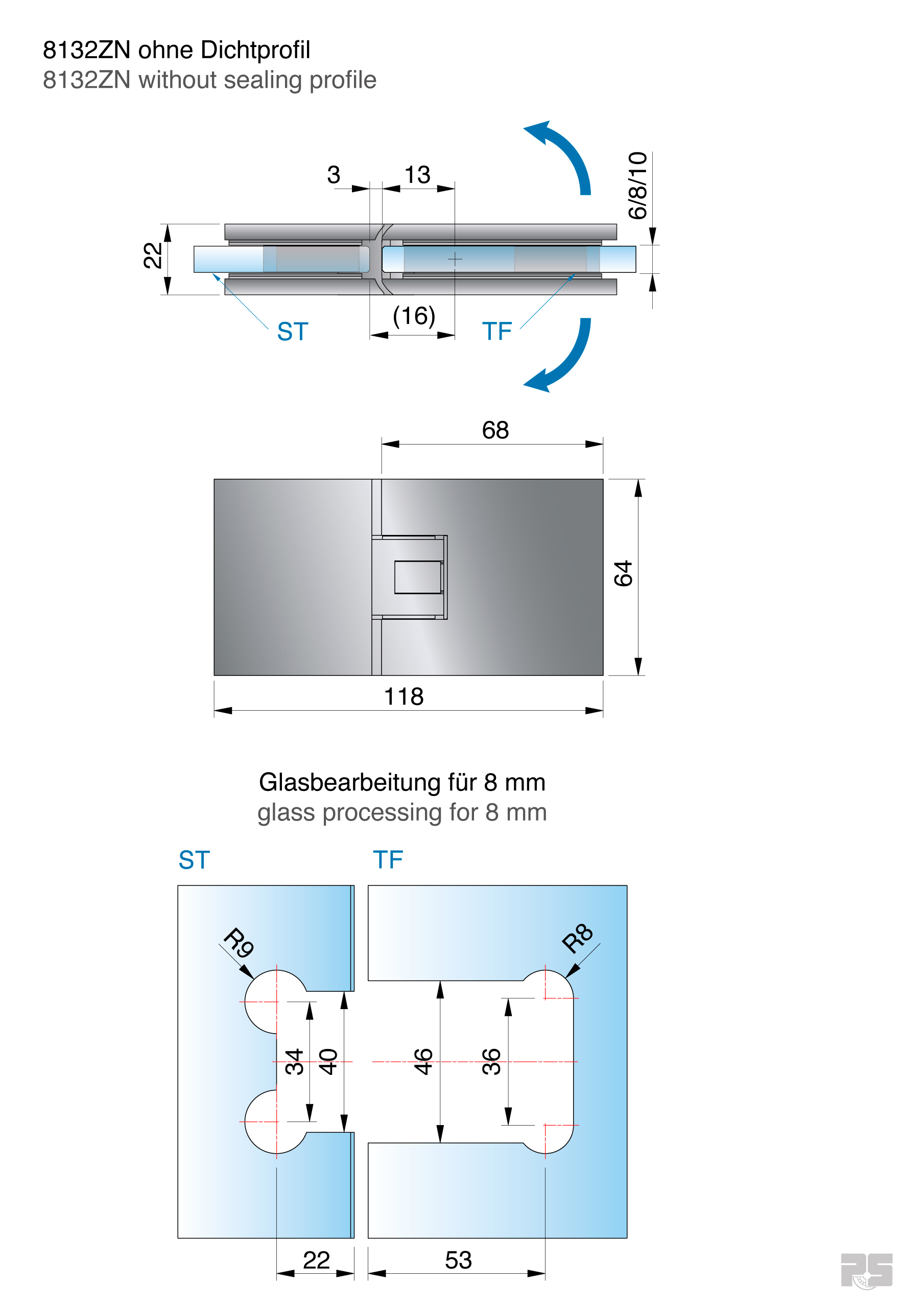 Glasdicke: 6 mm, 8 mm, 10 mm