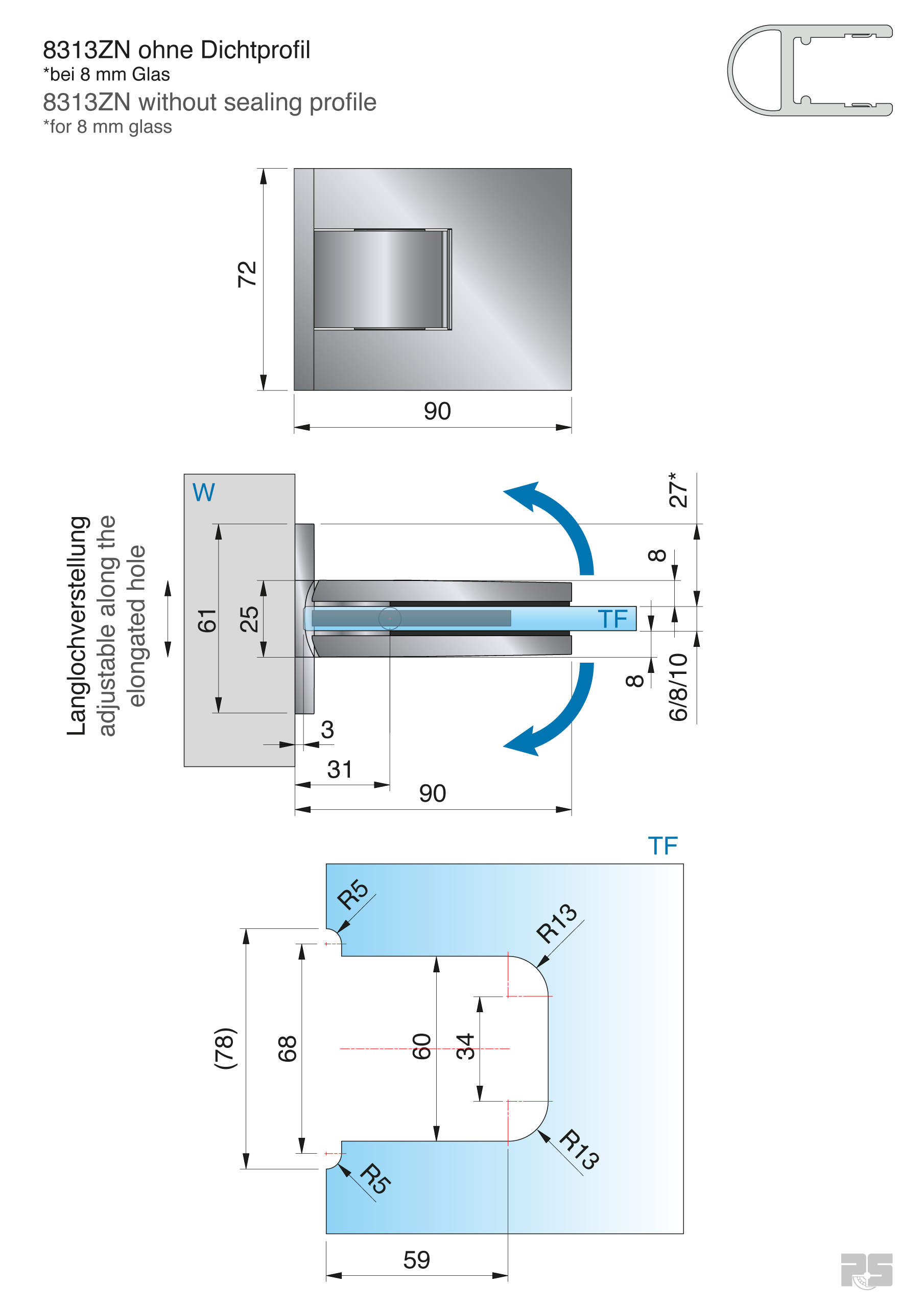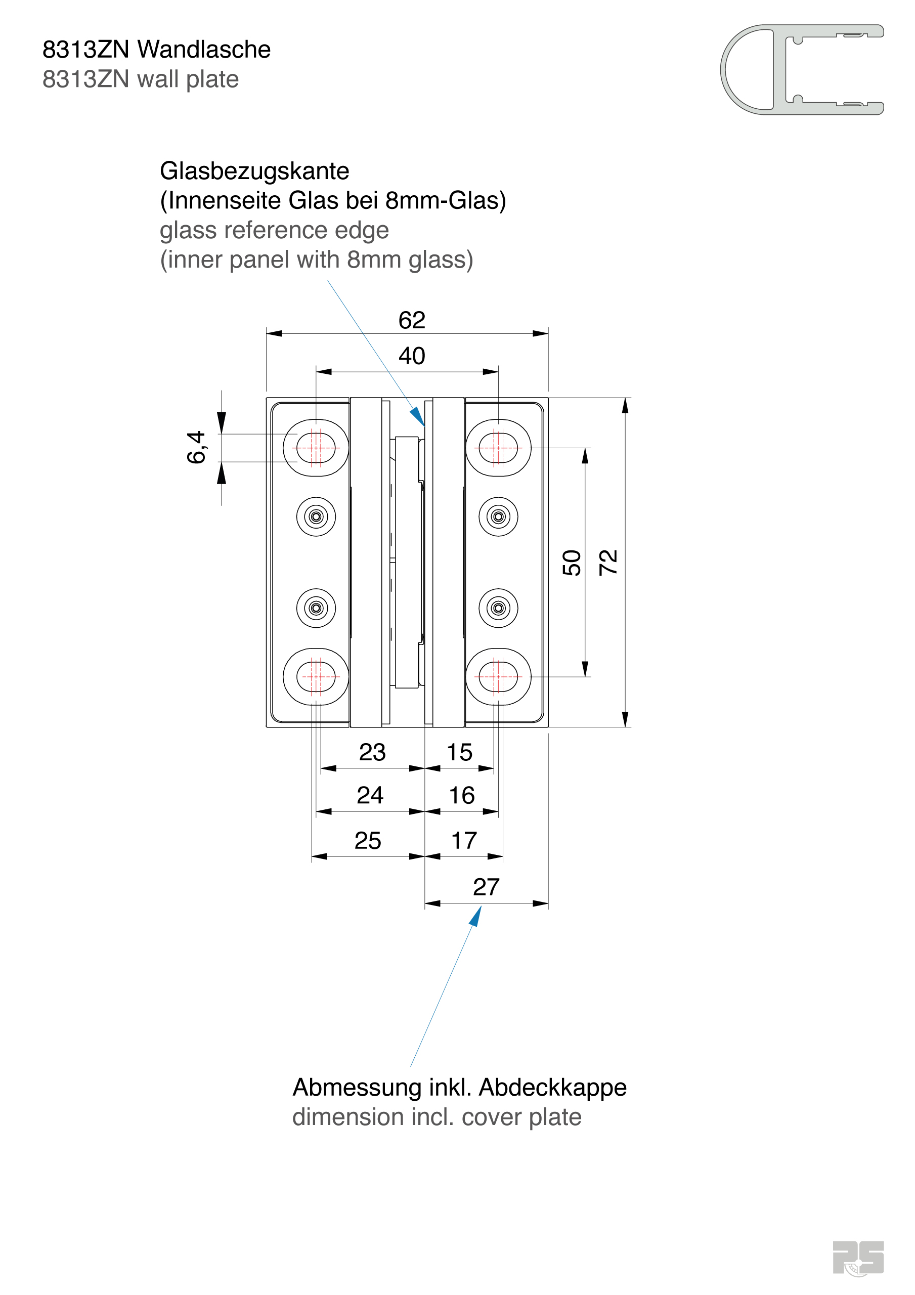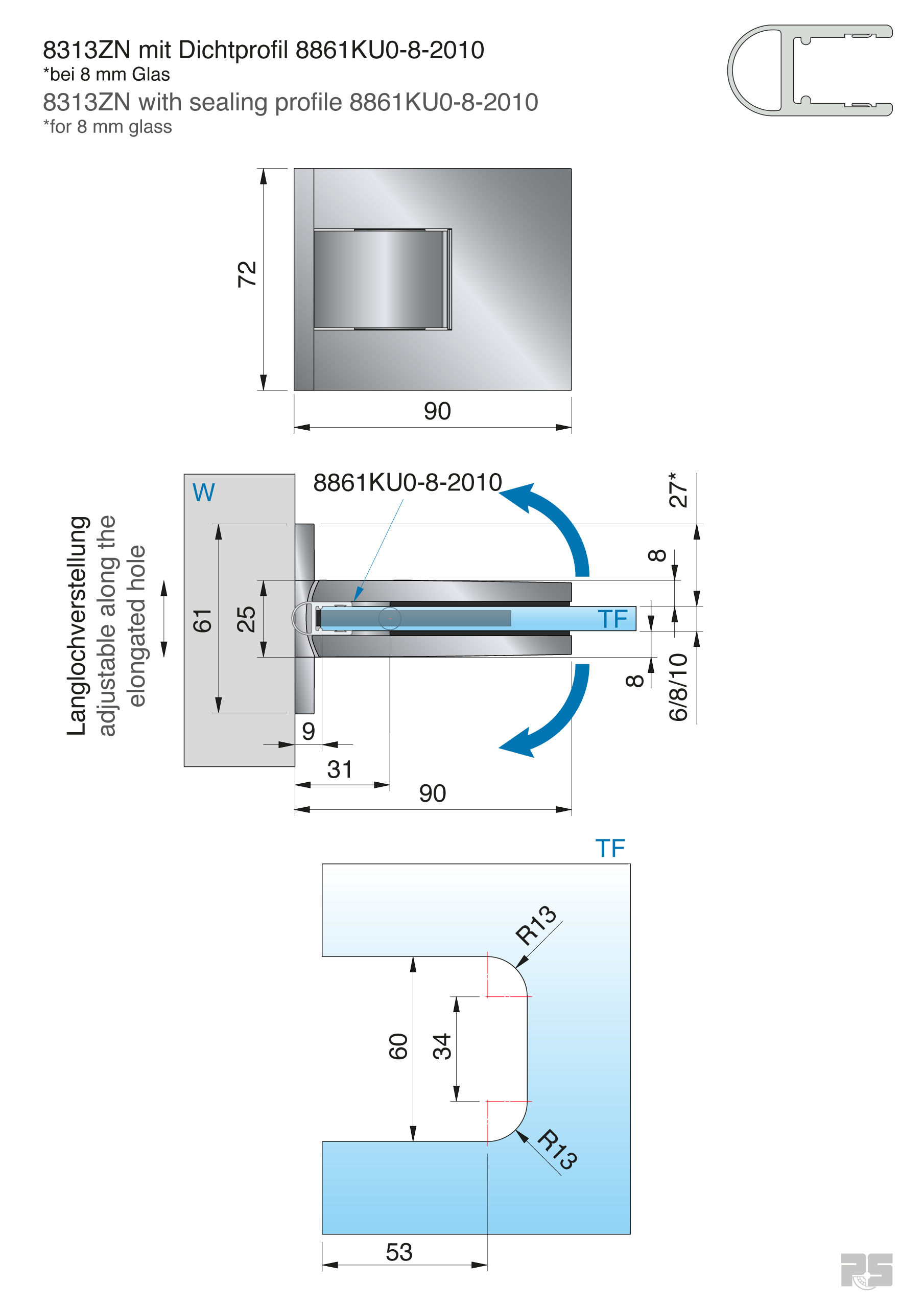 Glasdicke: 6 mm, 8 mm, 10 mm