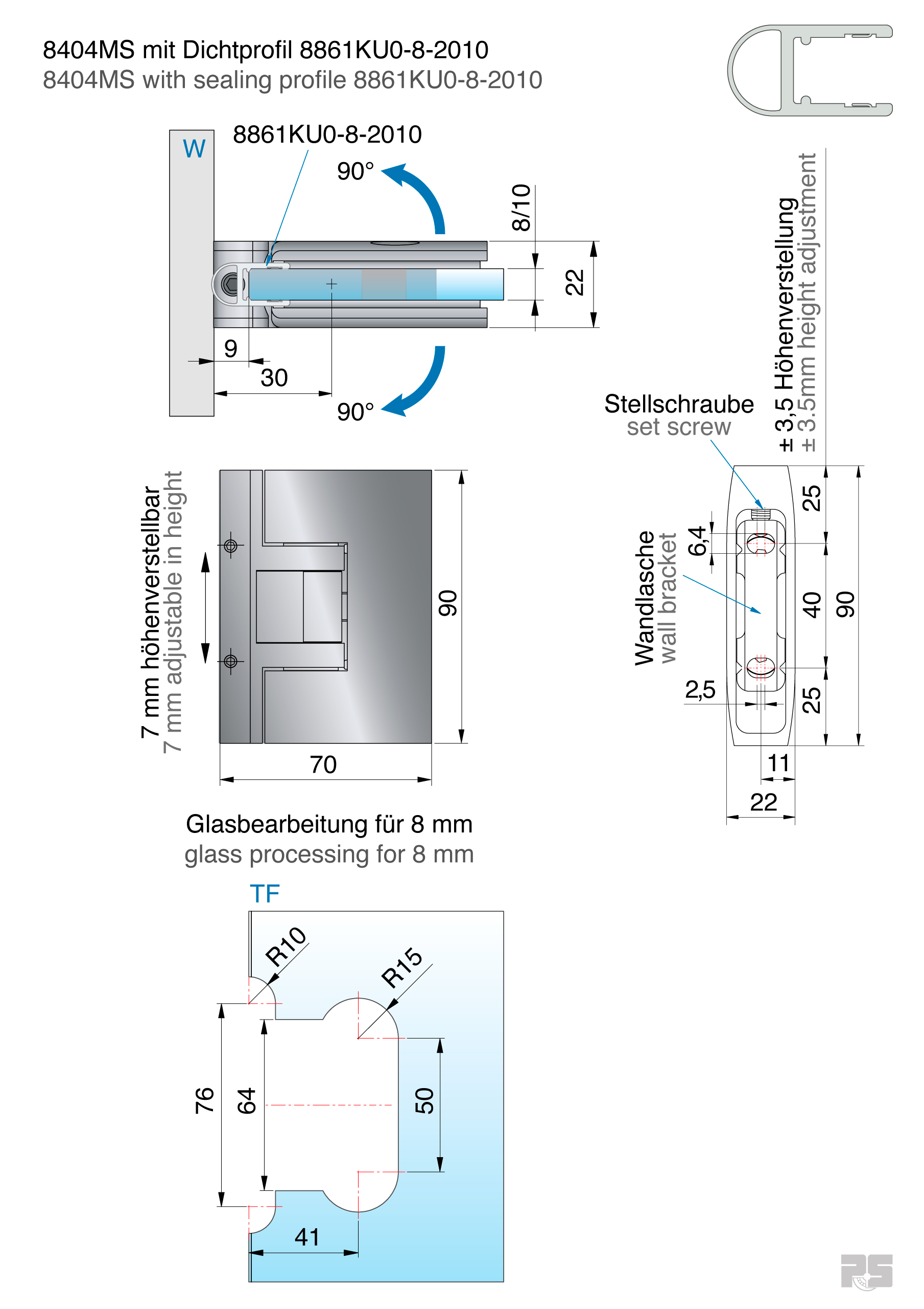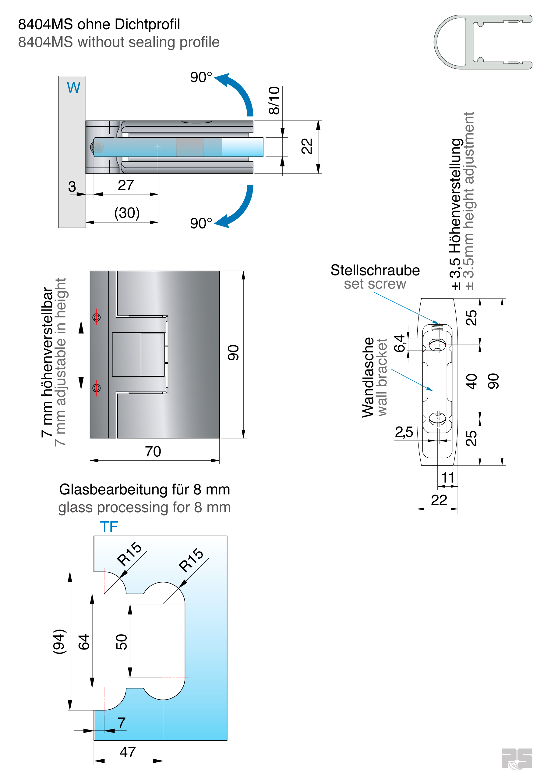 | Einbauart: | Glas-Wand 90° |