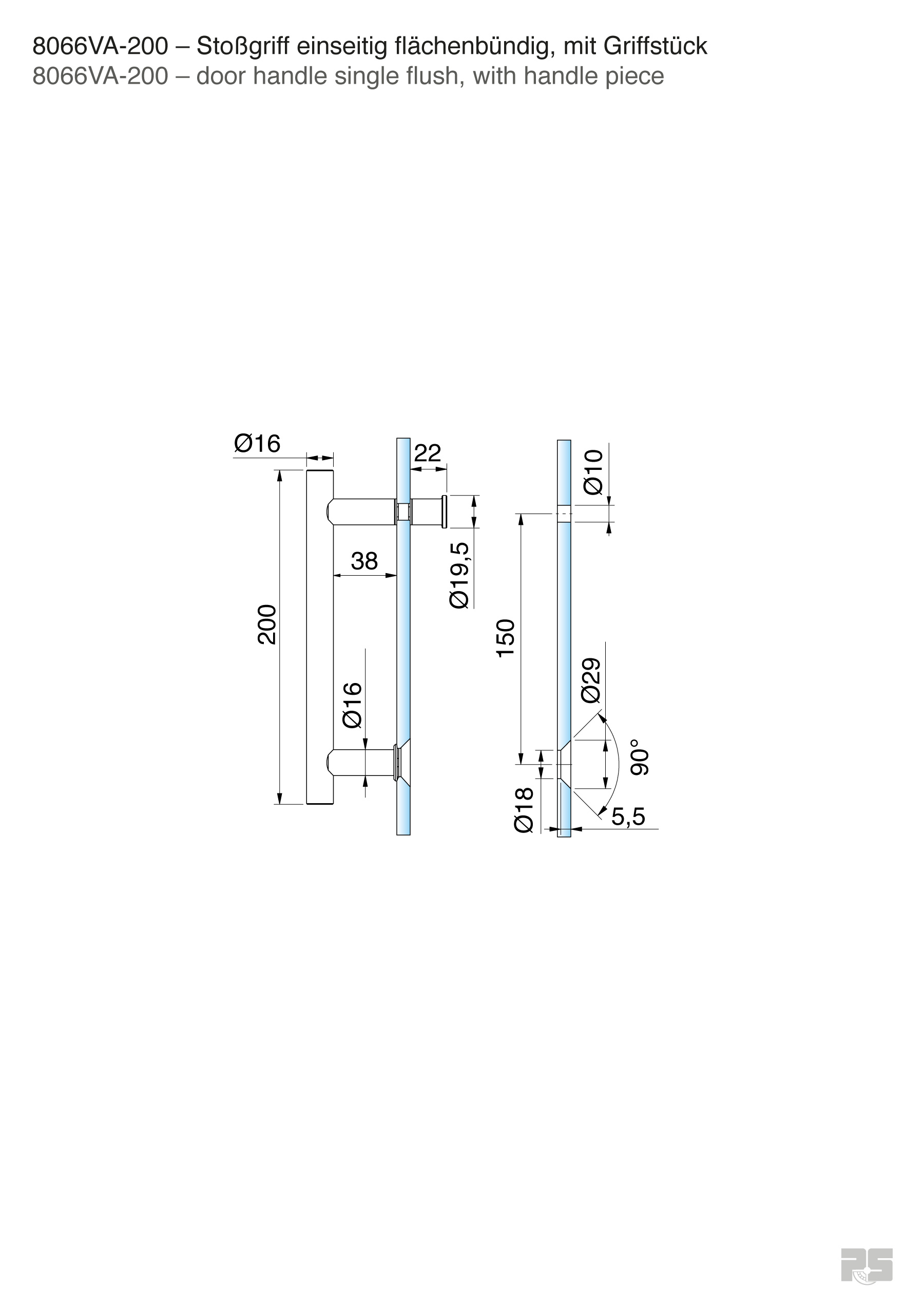 Stoßgriff einseitig flächenbündig, mit Grffstück, Edelstahl poliert