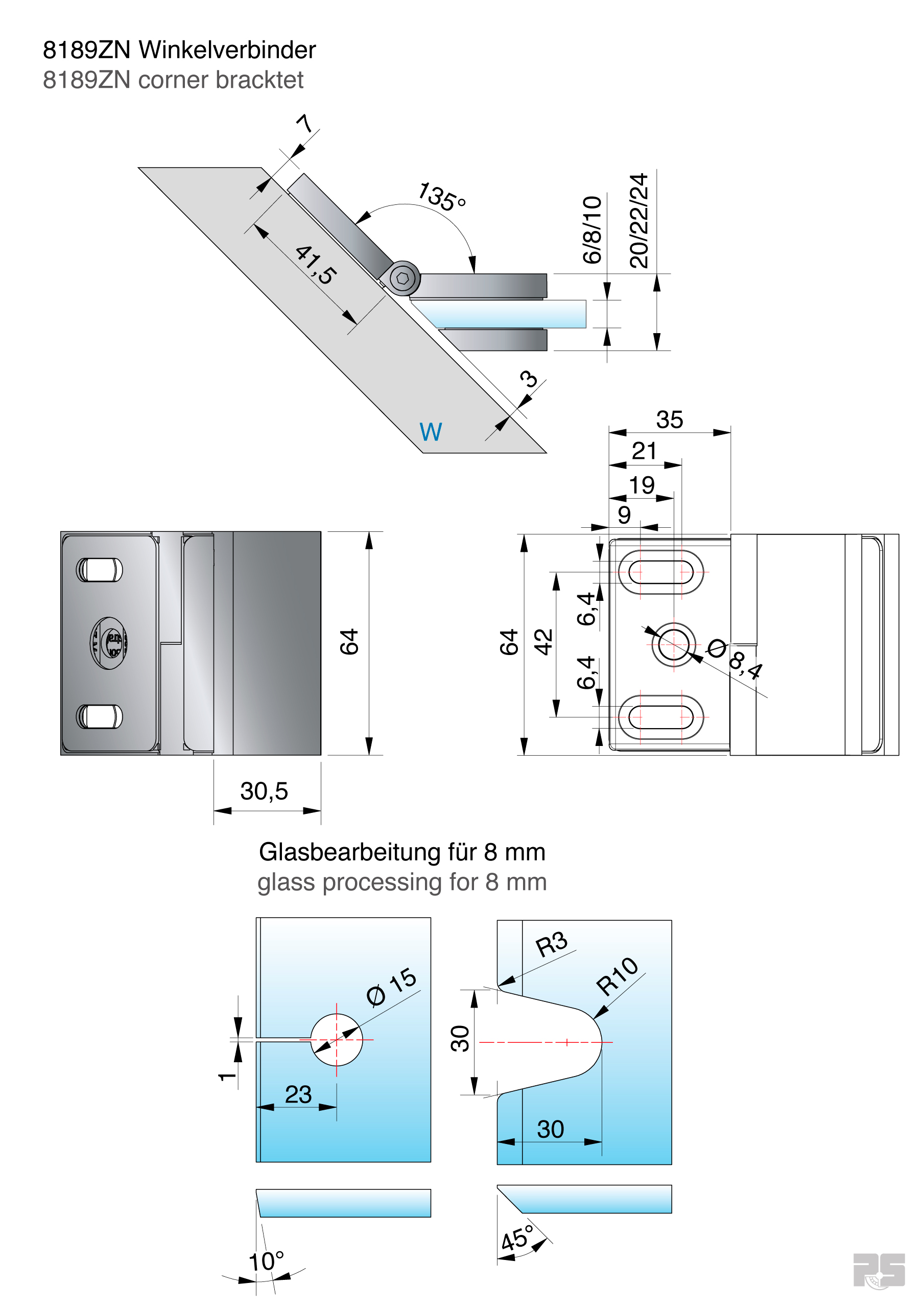 Glasdicke: 6 mm, 8 mm, 10 mm