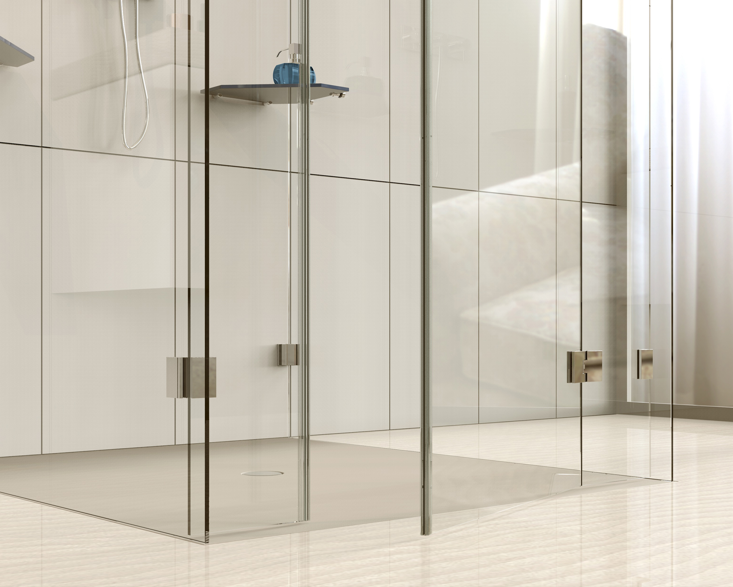 Die Serie FLAMEA+ wurde für Duschen der Top-Klasse entwickelt. Die optimale Einbausituation: Ganzglasduschen in XL-Formaten. FLAMEA+ erfüllt alle ästhetischen und funktionalen Ansprüche für den Objekt- und Privatbereich. beidseitig 90° öffnendes Duschpendeltürband auf den letzten Zentimetern selbstschließend mittig liegender Drehpunkt und daher als Pendeltür nutzbar stufenlose Nulllageneinstellung Tragfähigkeit (2 Bänder): 45 kg entsprechen einer maximalen Türflügelgröße von 900 x 2000 mm bei 10 mm Glasdicke optimiert für die Verbauung ohne Dichtprofil verdeckte Verschraubungen mit Abdeckkappen minimierte Spaltmaße und daher dichter Die Haltbarkeit der Beschläge wurde durch werksinterne Versuche nach DIN EN 14428:2015/A1:2018 5.5 und TR24 geprüft.
