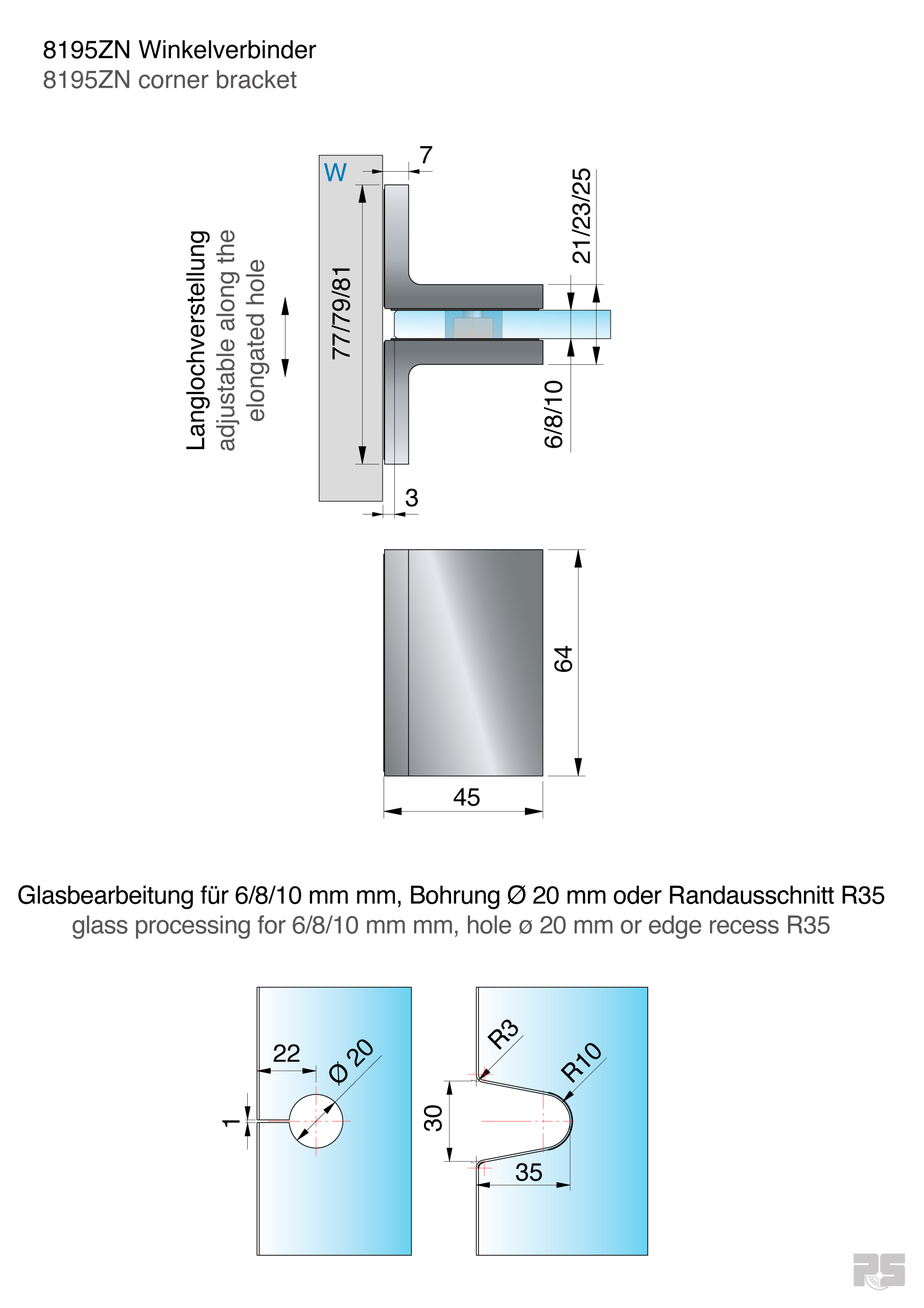 Glasdicke: 6 mm, 8 mm, 10 mm