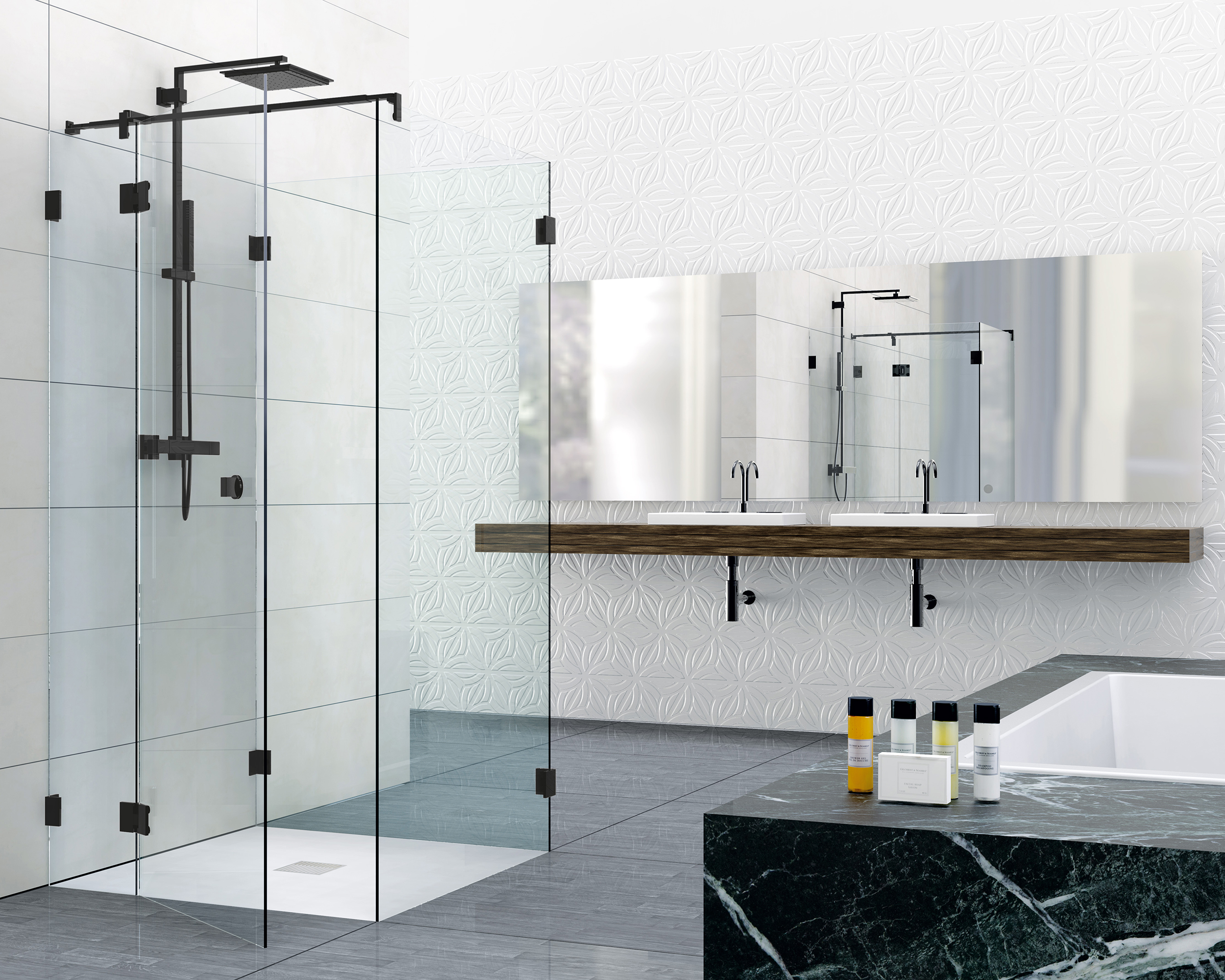Hebe-Senk-Pendeltürband, flächenbündig, Glas-Glas 90°