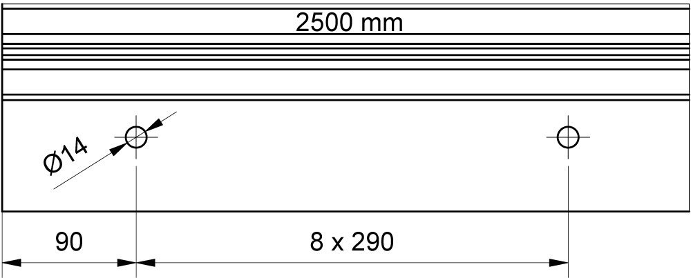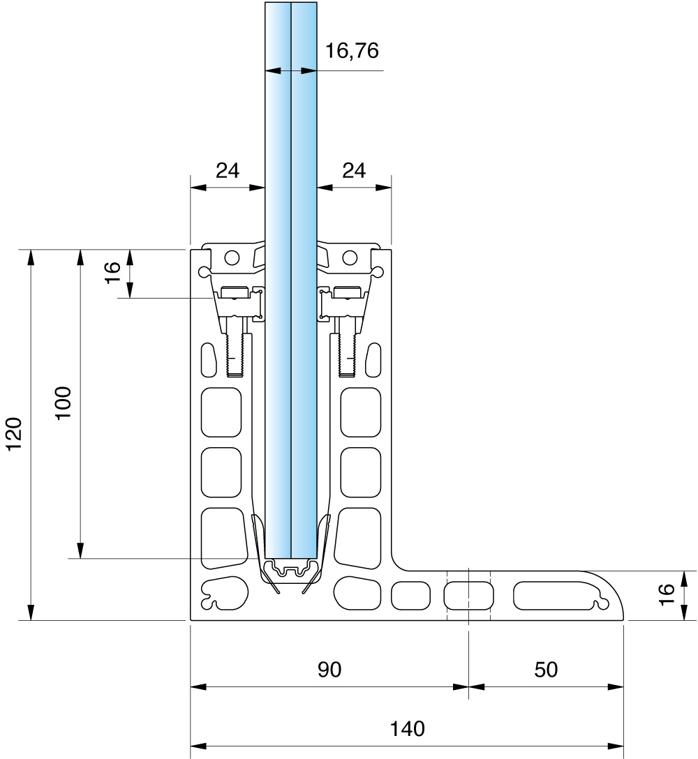 Länge: 2500 mm Oberfläche: Alu-Leichtmetall silberfarbig eloxiert Glasdicke: 17,52 mm