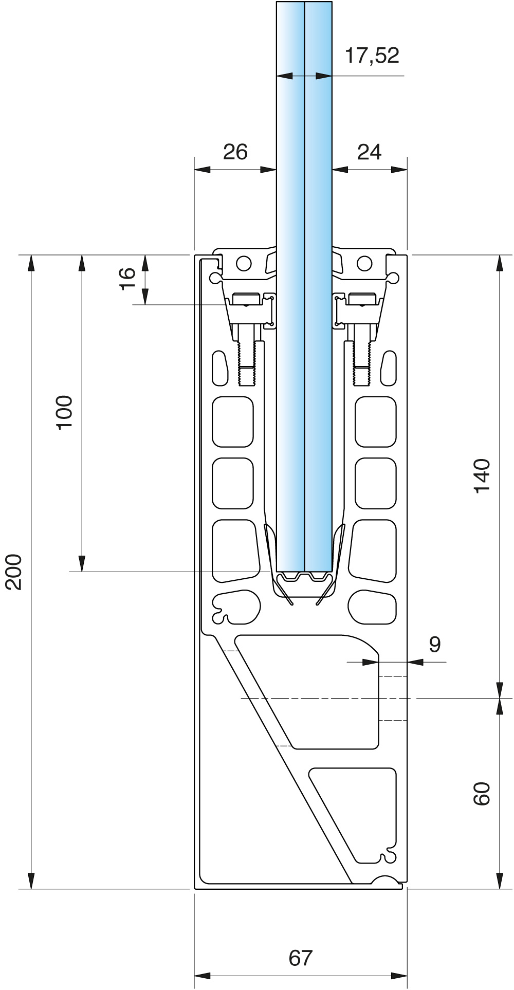 cp-1440/42/43/44 oberes Verglasungsprofil