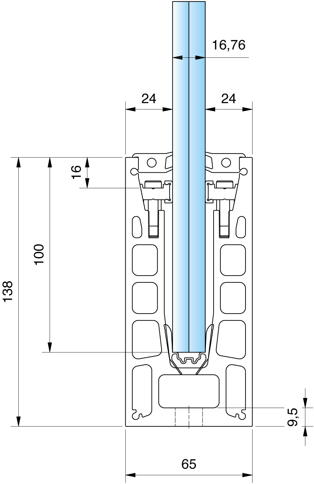 Handlaufträger variabel, Glasanschluss