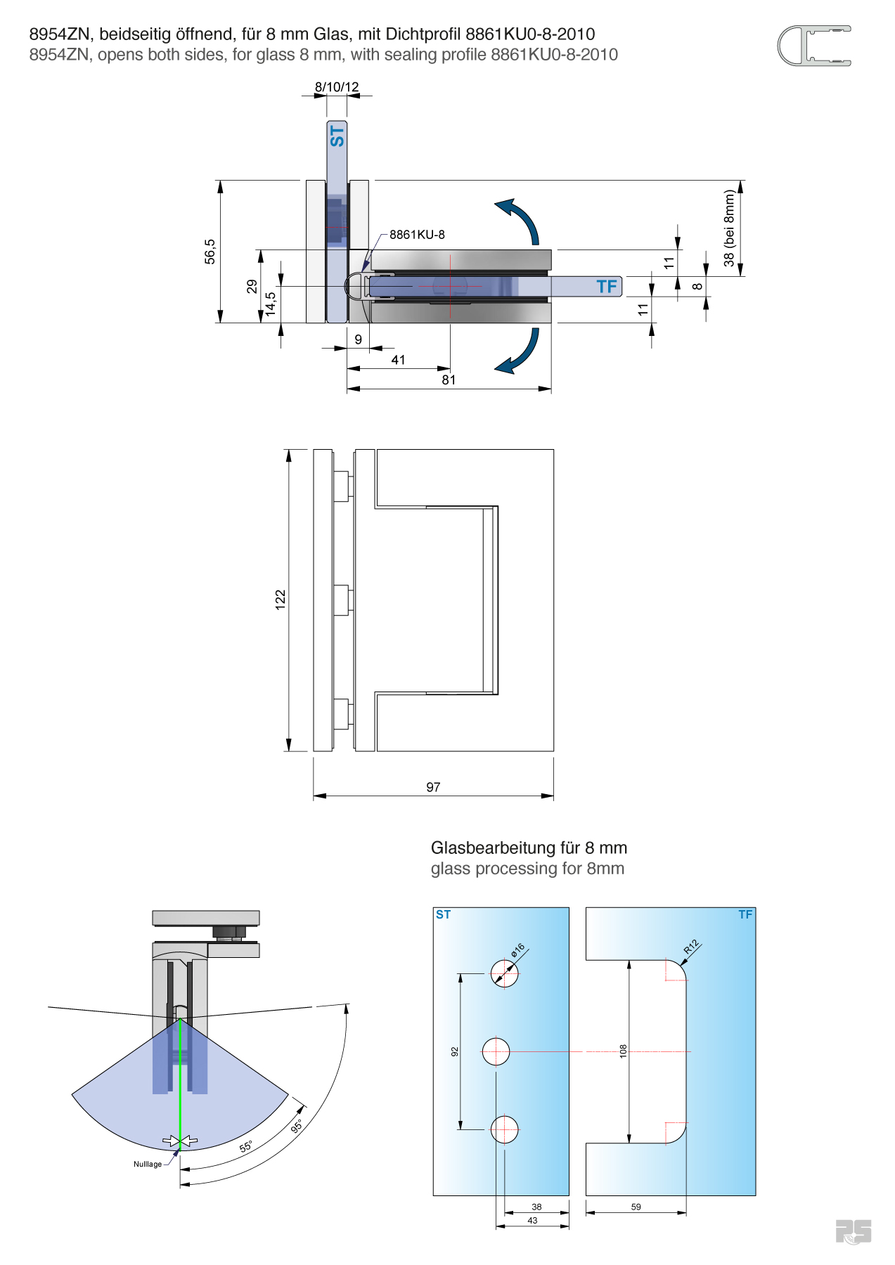 stufenlose Nulllageneinstellung, selbstschliessend ab 55°, Langlochverstellung und verdeckte Verschraubungen