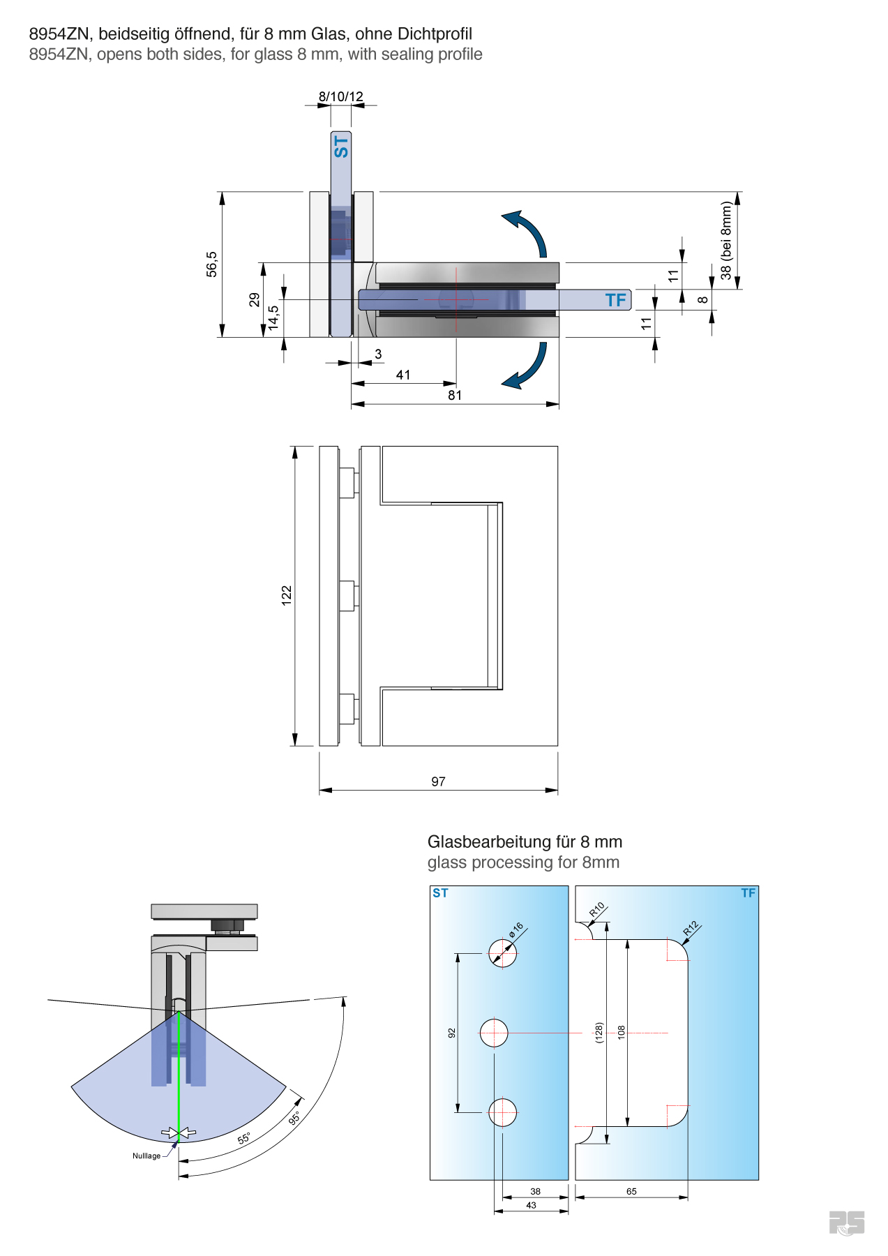 Pendeltürband Glas-Glas 90°, beidseitig max. 95° öffnend